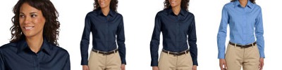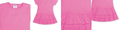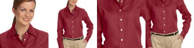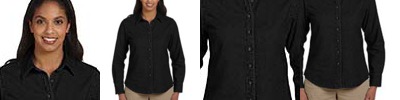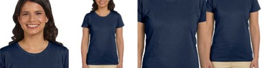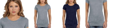 50% polyester/50% cotton jersey knit; Ladies' fit; 1x1 rib-knit V-neck collar and armholes; Double-needle hemmed bottom;