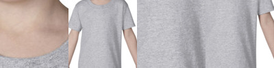 4.5 oz., 100% combed ringspun cotton jersey; Topstitched ribbed collar; Taped neck with EasyTear™ label; Double-needle hemmed sleeves and bottom; White is sewn with 100% cotton thread; Heather is 93% cotton, 7% polyester;