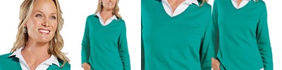 77% cotton, 18% nylon, 5% spandex; Delicate tubular placket and neck finish; Fully fashioned neck and armholes; Shell buttons; Rib cuffs and bottom;