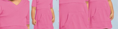 - Coverstitch pullover hood and V-neck collar