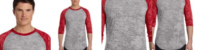50% ringspun cotton, 50% polyester; Extensively weathered, sheer fabric for vintage look; One-of-a-kind pilling and striation; Regular fit; sideseamed; 3/4 raglan sleeves; Fabric-dyed, enzyme/silicone finish; Merrowed bottom hem; 1x1 burnout rib collar; Union dyed sleeves, may slightly tint garment body;