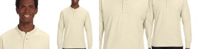 5.5 oz., 100% ringspun cotton jersey; Ribbed crew neck (97% ringspun cotton, 3% spandex); Taped shoulder-to-shoulder; Back locker patch; Double-needle hem bottom; Bleed-resistant ink is recommended for printing; Ribbed sleeve cuffs (97% ringspun cotton, 3% spandex);
