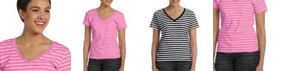 8823 Ladies' Lightweight Striped V-Neck T-Shirt